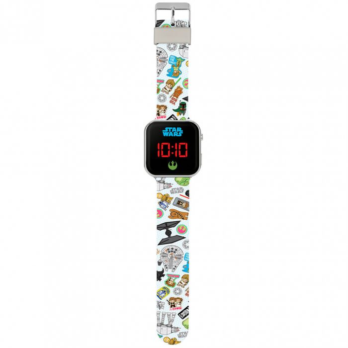 Easy to read display, featuring the Star Wars logo and cartoon images of the characters on the strap