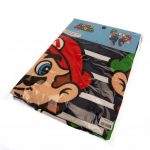 Blue stripe towel featuring Mario and Luigi