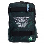Black and dark green premium backpack featuring a white TMNT: Mutant Mayhem design on the front