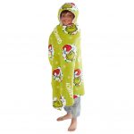 Luxury green poncho, featuring multiple images of a smirking Grinch