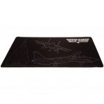 Black mat featuring blue prints of the SU-57 Felon and Top Gun logo