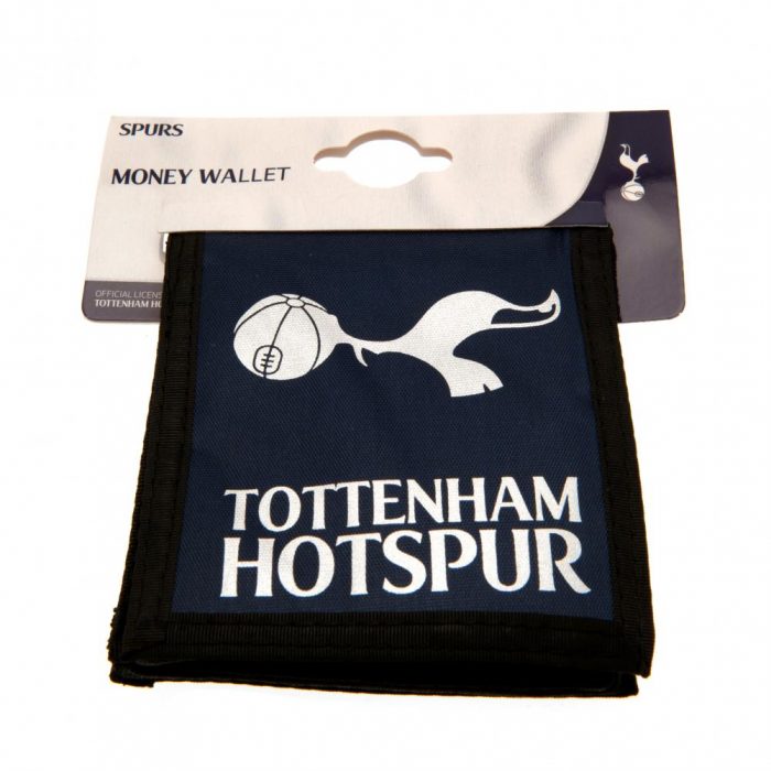 Navy blue wallet with black trim featuring Tottenham Hotspur text and club crest in white
