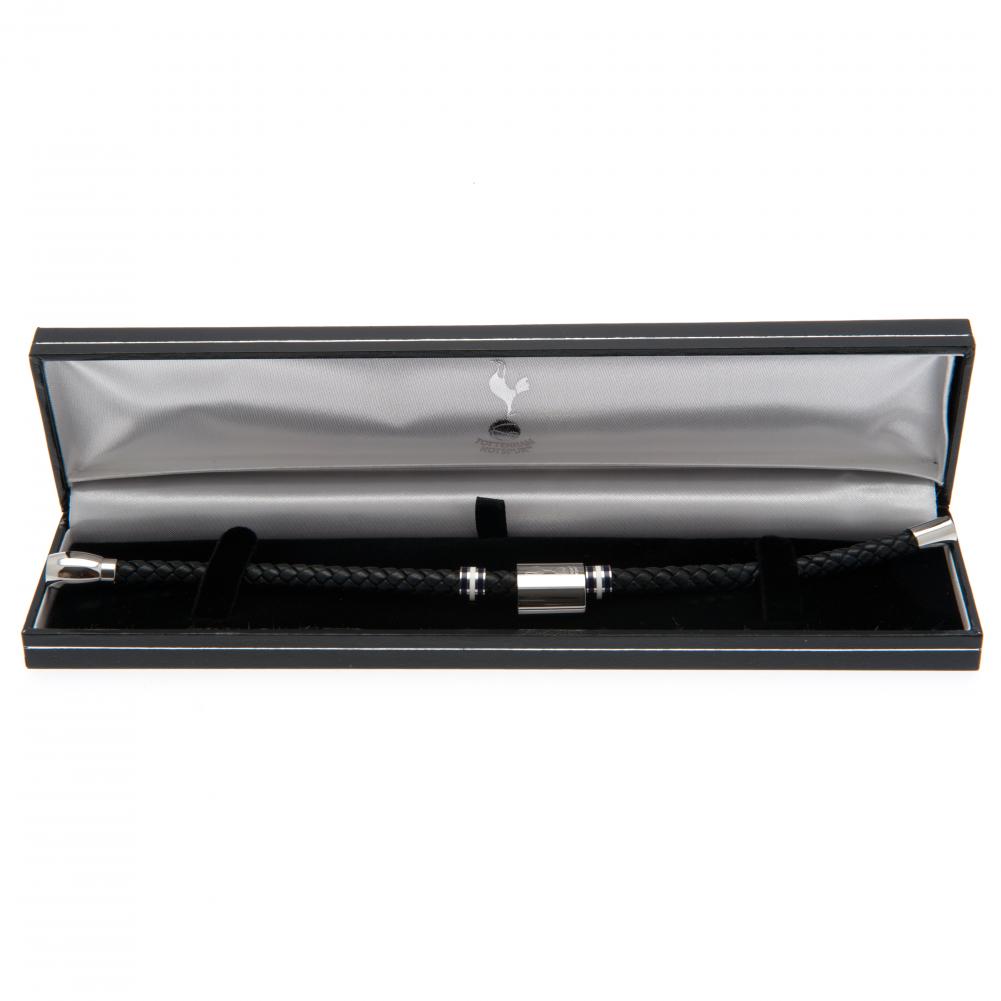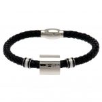 Black bracelet featuring stainless steel colour rings and an engraved club crest