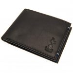 Leather wallet featuring navy blue and white stitching detail and embossed club crest