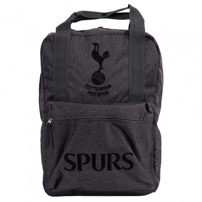 Stylish grey backpack featuring an embroidered Tottenham Hotspurs FC crest and the text SPURS in black on the front pocket
