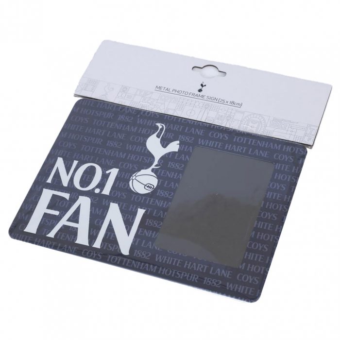 Sturdy metal photo frame sign featuring the Tottenham Hotspur FC crest and No.1 FAN in bold white text on the bottom left