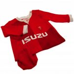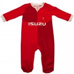 This long sleeved baby sleepsuit features the famous red home colour of Wales RU