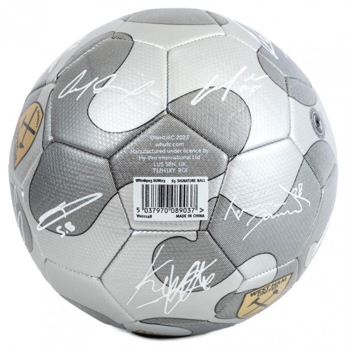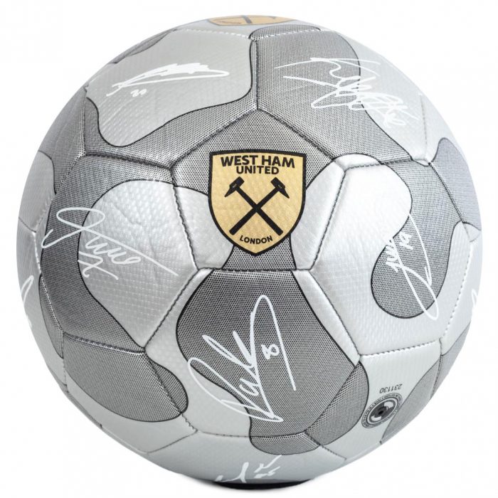 Striking silver colour featuring the Hammers crest and official player signature prints in white