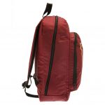 Colour React claret backpack with a large gold crest and a small full colour crest