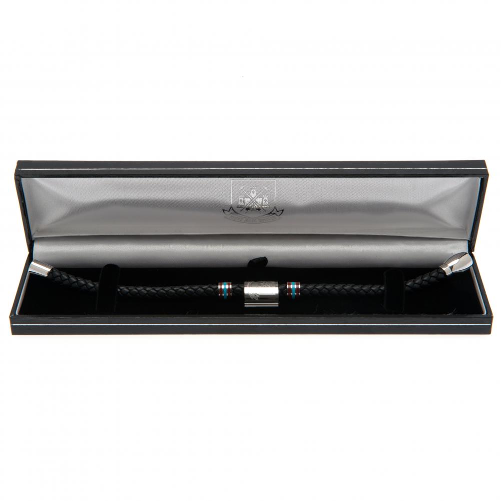 Black bracelet featuring stainless steel colour rings and an engraved club crest
