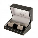 Stainless steel satin finish cufflinks featuring an engraved Hammers crest