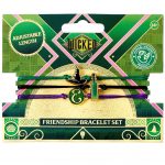 Elphaba logo, witch hat and potion features on adjustable cord bracelets of green, purple and black